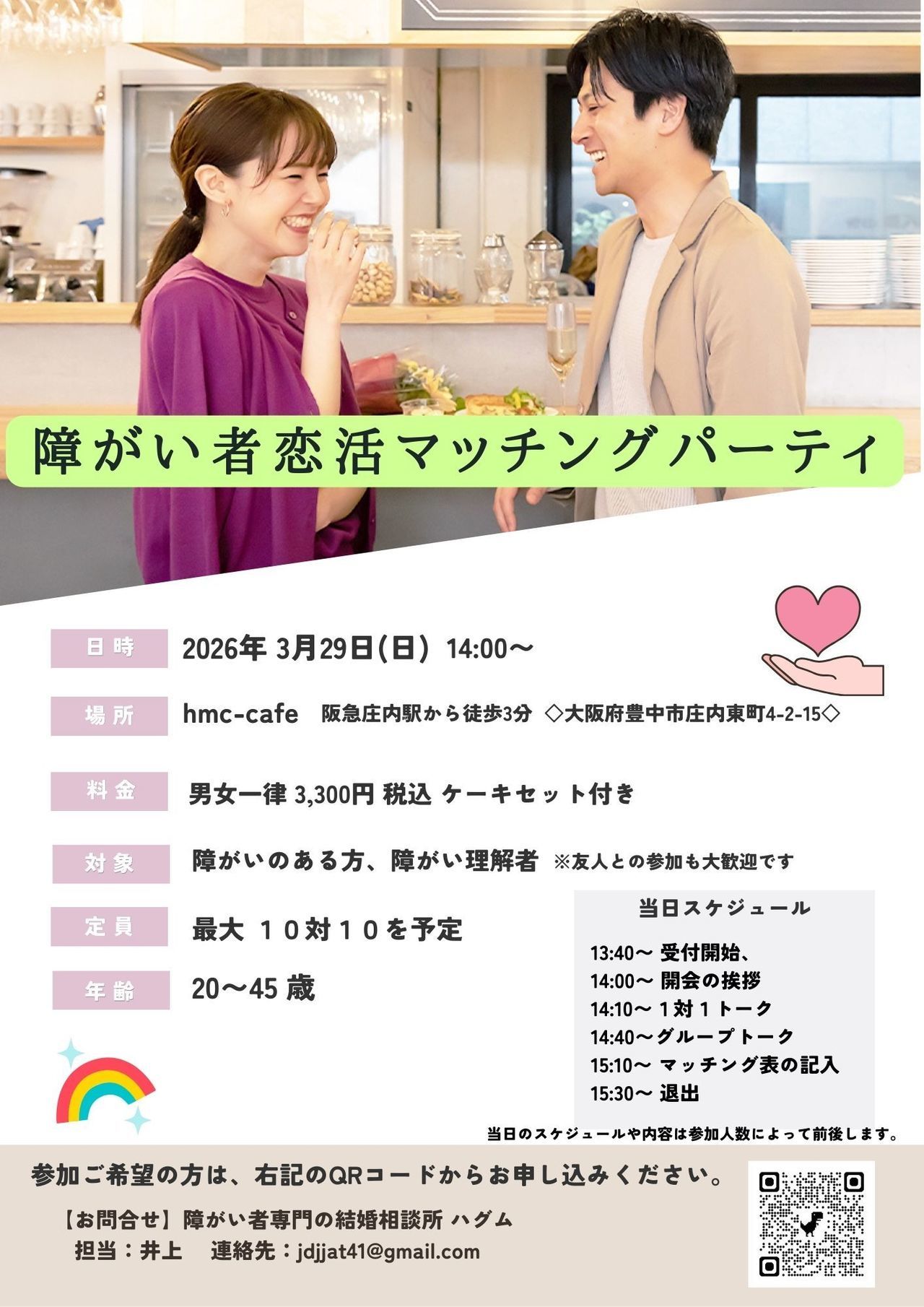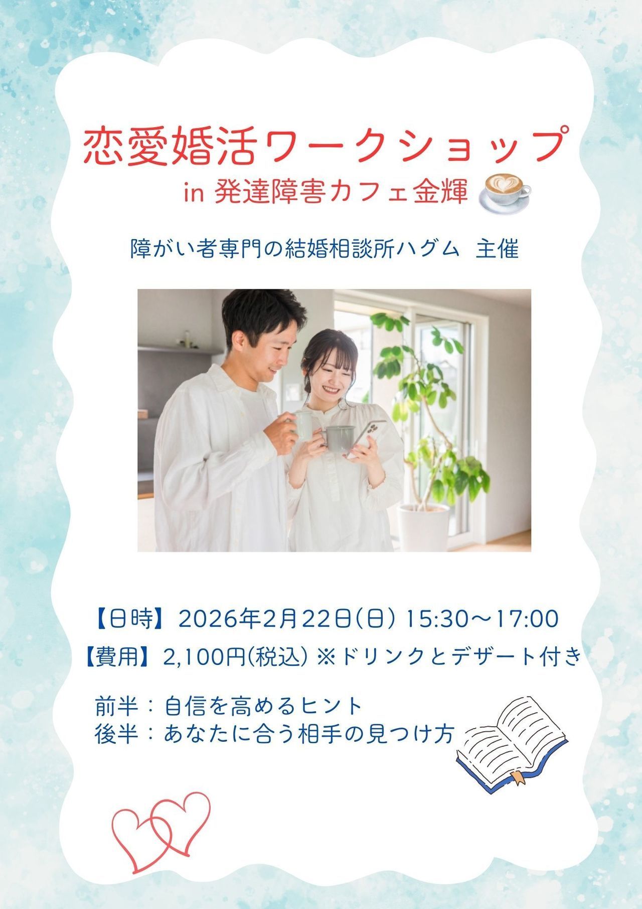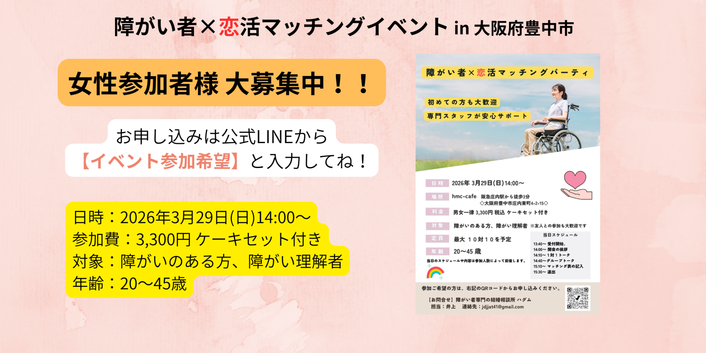 お付き合いしていた彼と別れてから、婚活をするためマッチングアプリや婚活パーティに参加しましたが、なかなか良い人に出会えず、障がいのことも理解してもらえるか不安だった時にネットでコチラを見つけました。