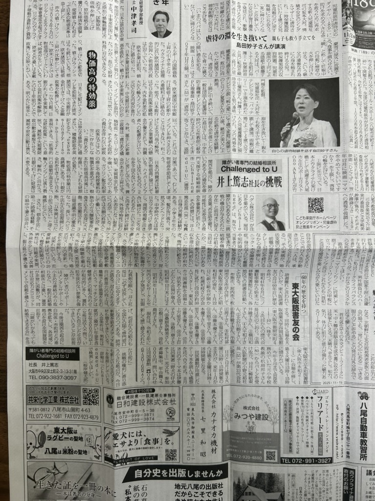 2025年11月15日(土)の東大阪新聞の1面にて大きく弊社の取り組みを掲載していただきました。